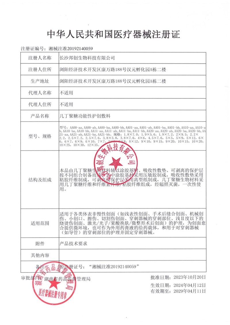 幾丁聚糖功能性護創(chuàng )敷料-注冊證