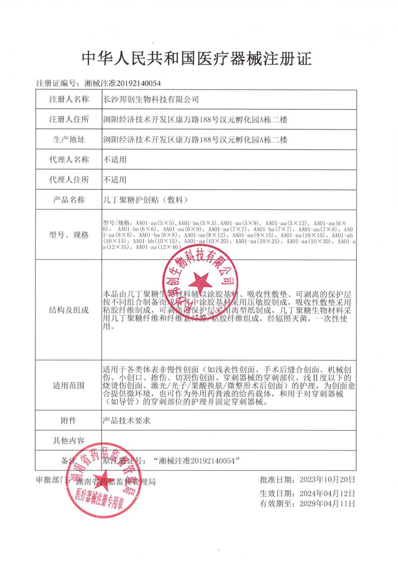 幾丁聚糖護創(chuàng )帖(敷料)-注冊證