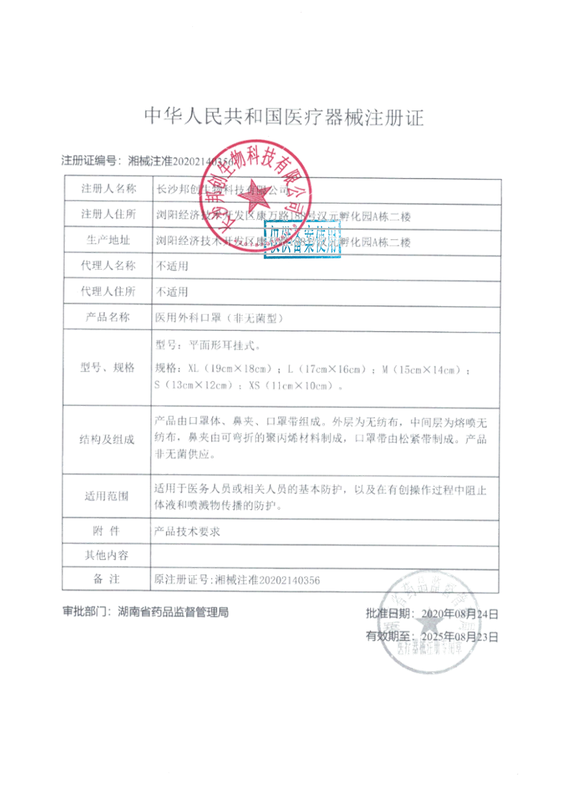 醫用外科口罩(非無(wú)菌)--注冊證