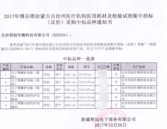 恭賀我公司產(chǎn)品在2017年新疆博爾塔拉蒙古自治州醫用耗材招標采購項目中標